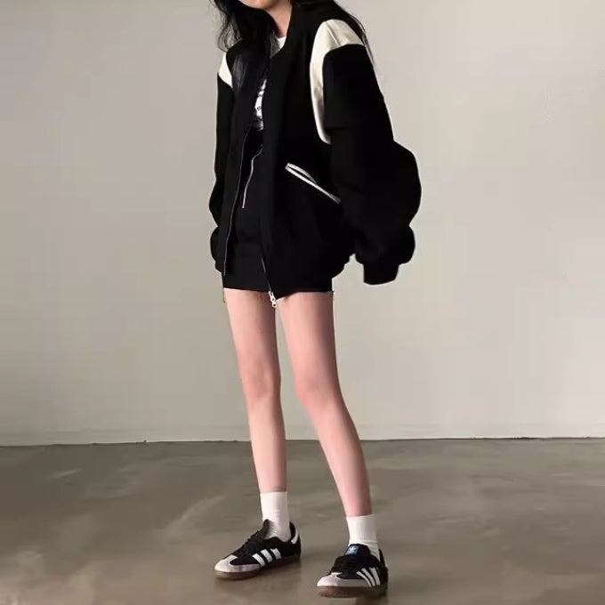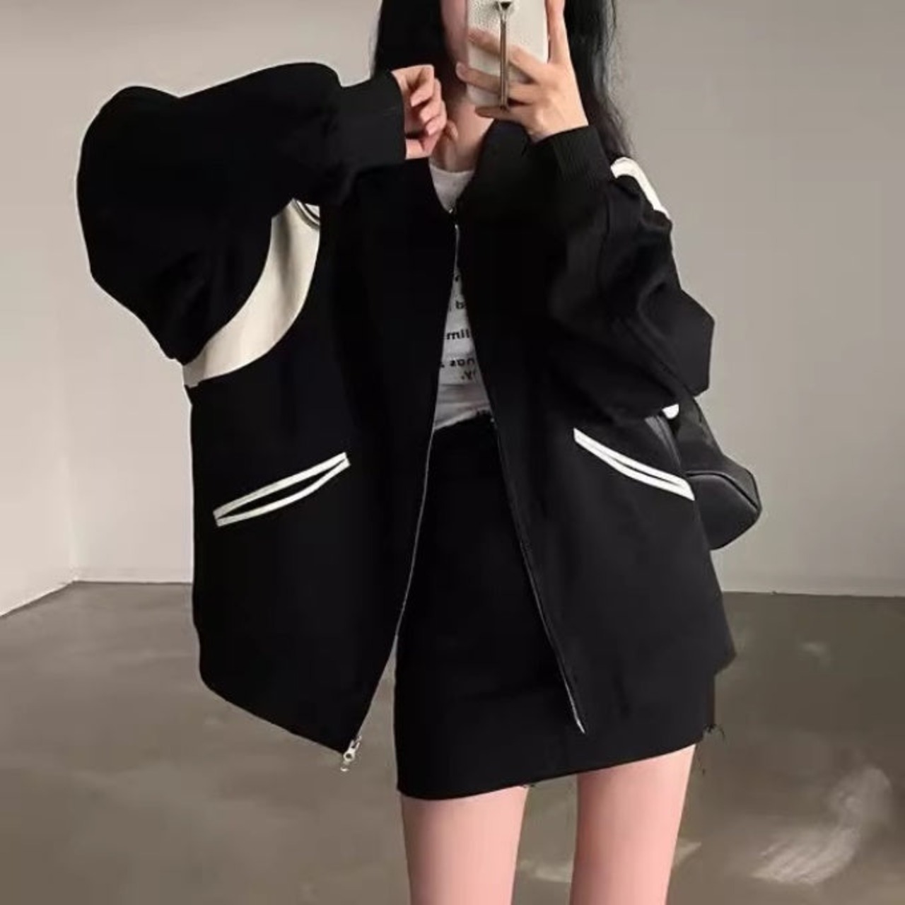 ジップブルゾン レディース 韓国 ファッション オーバーサイズ ビッグシルエット モノトーン おしゃれ シック