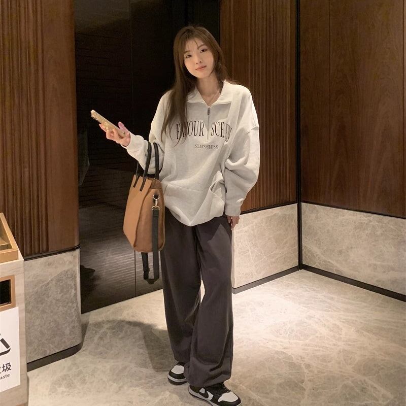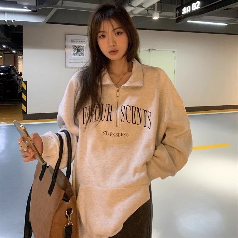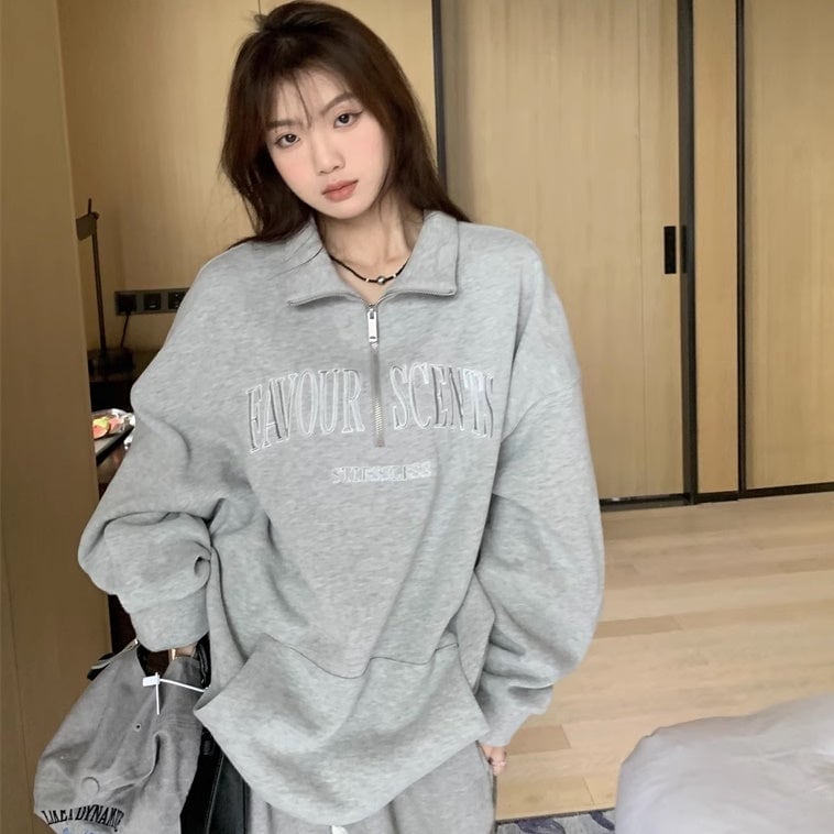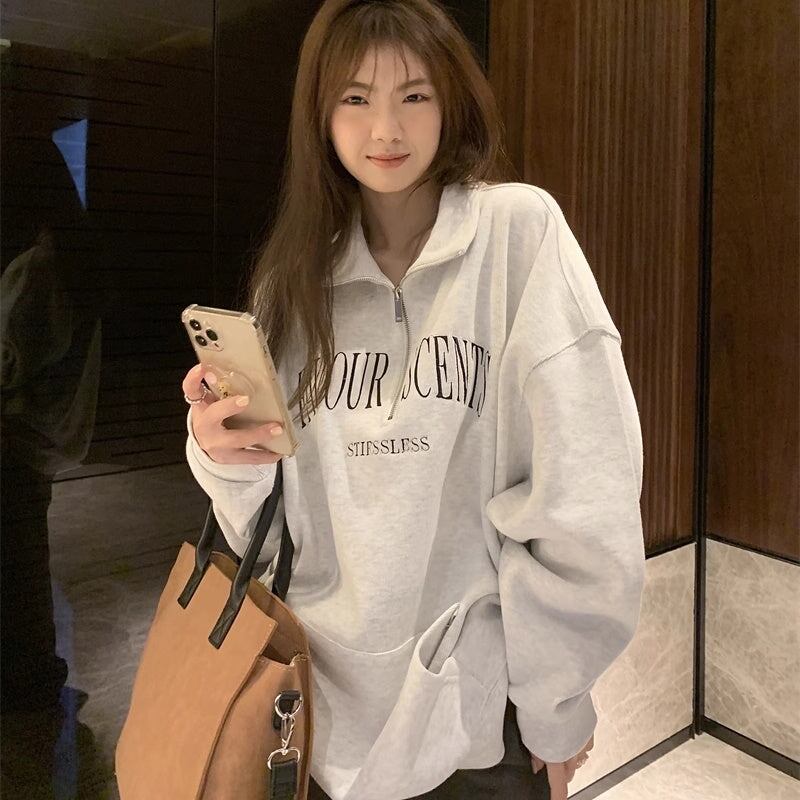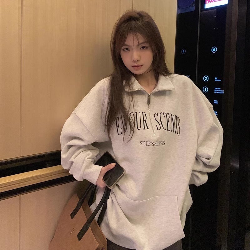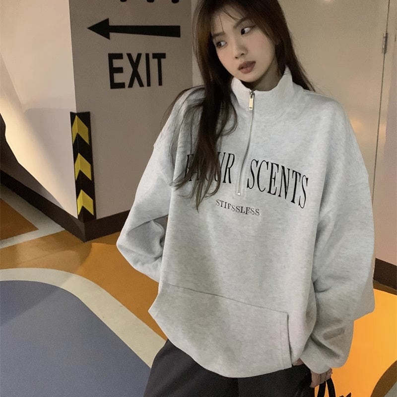 ハーフジップ スウェット トレーナー レディース 韓国 ファッション ロゴ ハイネック オーバーサイズ 秋冬 トップス