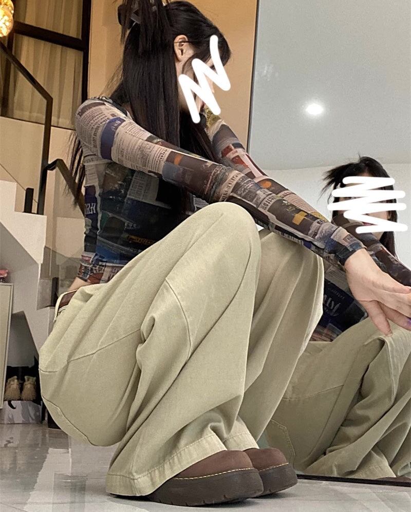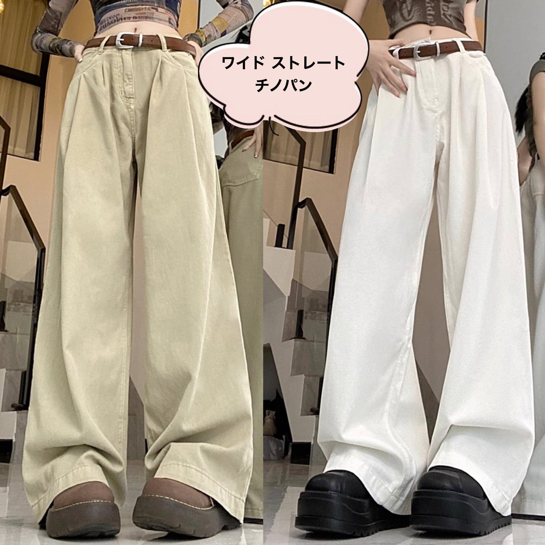 ワイド チノパンツ レディース 韓国 ファッション ハイウエスト ルーズ ストレート ワイドパンツ