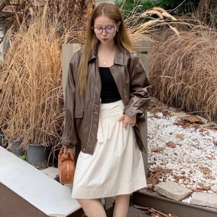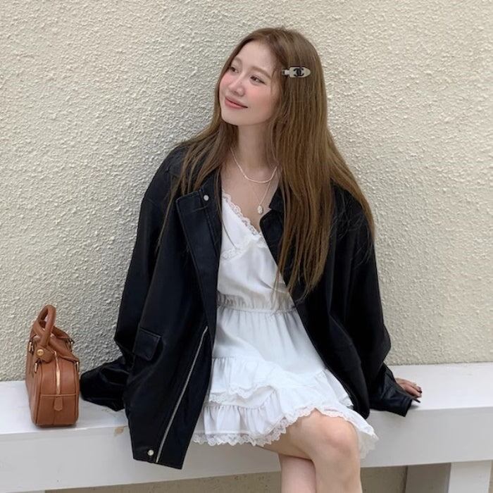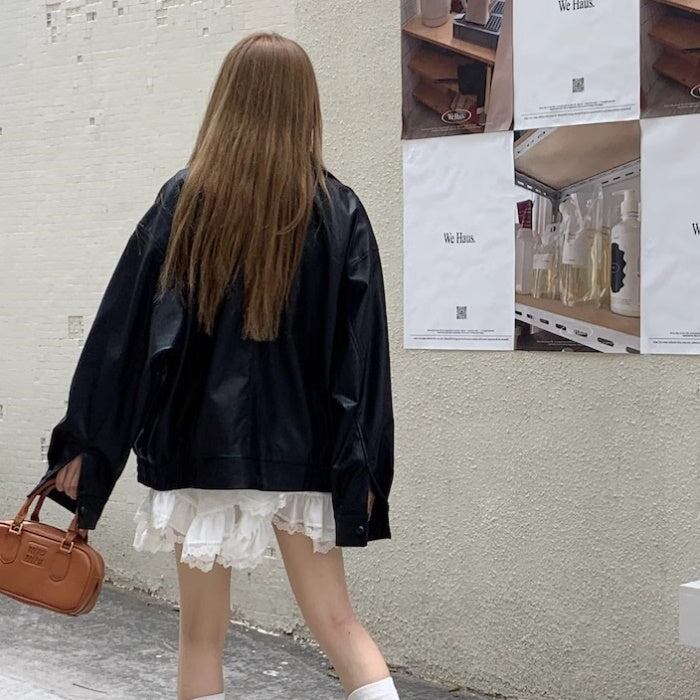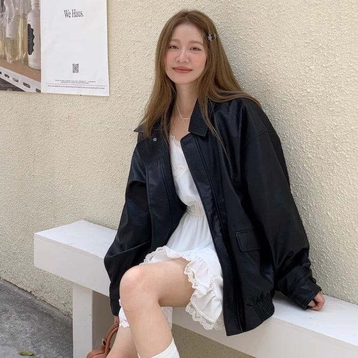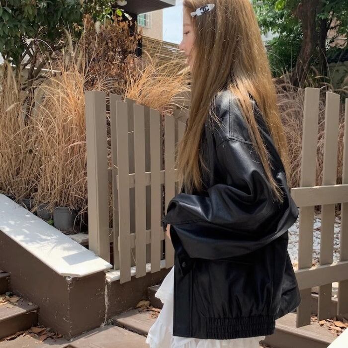 レザージャケット レディース 韓国 ファッション フェイクレザー 合皮 ライダースジャケット ジップブルゾン オーバーサイズ ゆったりサイズ