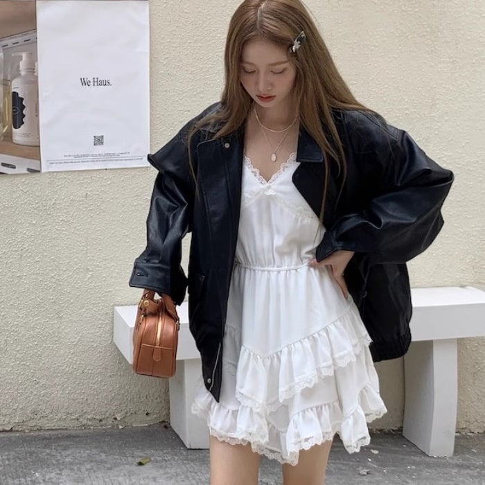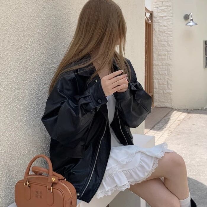 シンプルコーデを格上げしてくれるレザージャケット