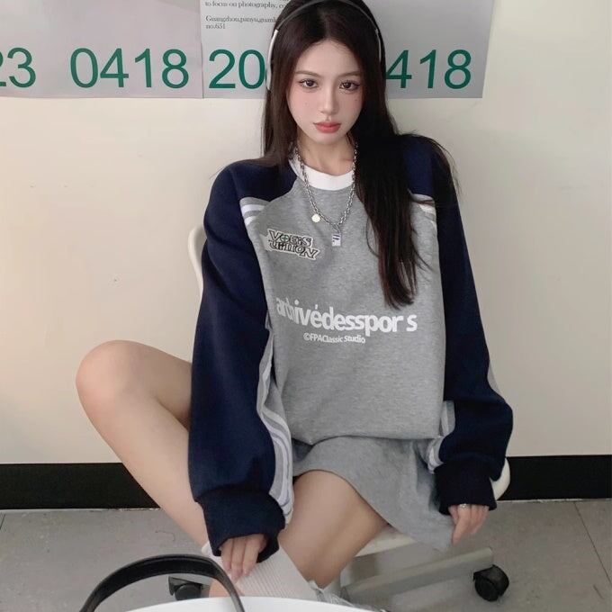 ライン スポーツ トレーナー レディース 韓国 ストリート ファッション ロゴ 袖ライン オーバーサイズ スウェット 秋冬 トップス