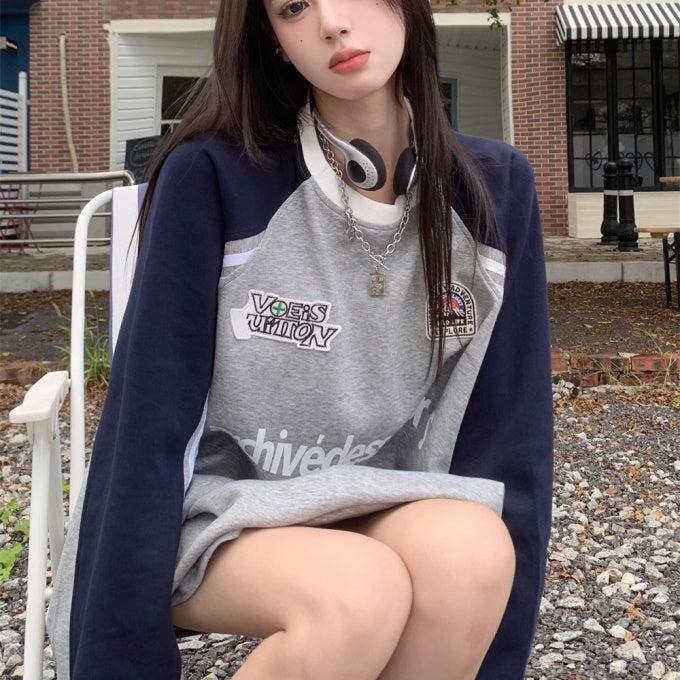 トレーナー レディース 韓国 ファッション ロゴ ワッペン 袖ライン スウェット おしゃれ 大人カジュアル メンズライク オーバーサイズ メンズライク