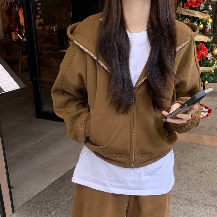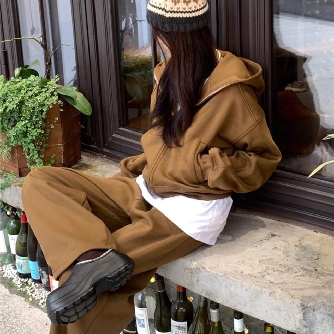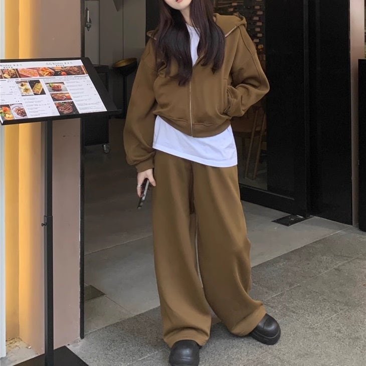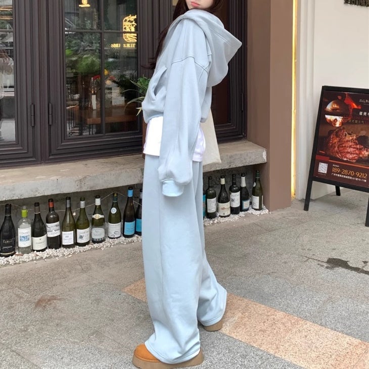 パーカーセットアップ レディース 韓国 ファッション スウェット ジップパーカー ワイドパンツ 上下2点セット