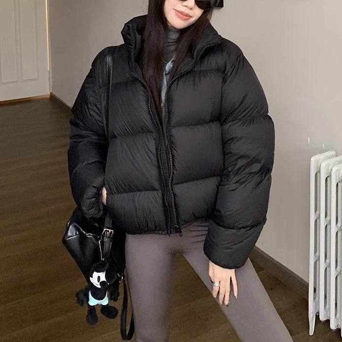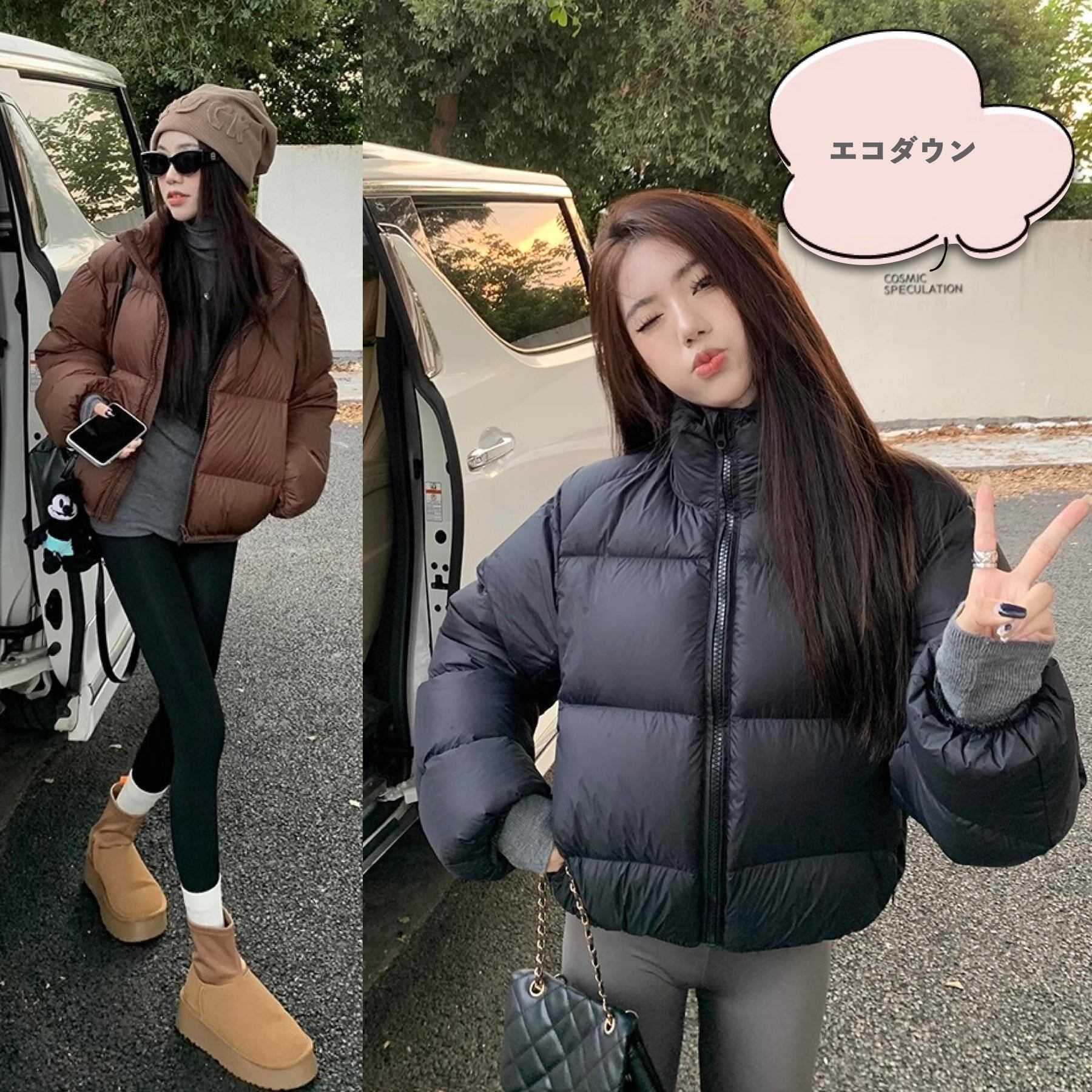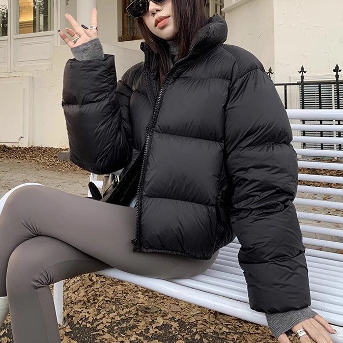 ショート エコダウン ジャケット レディース 韓国 ファッション クロップド丈 中綿 パデット ジャケット