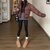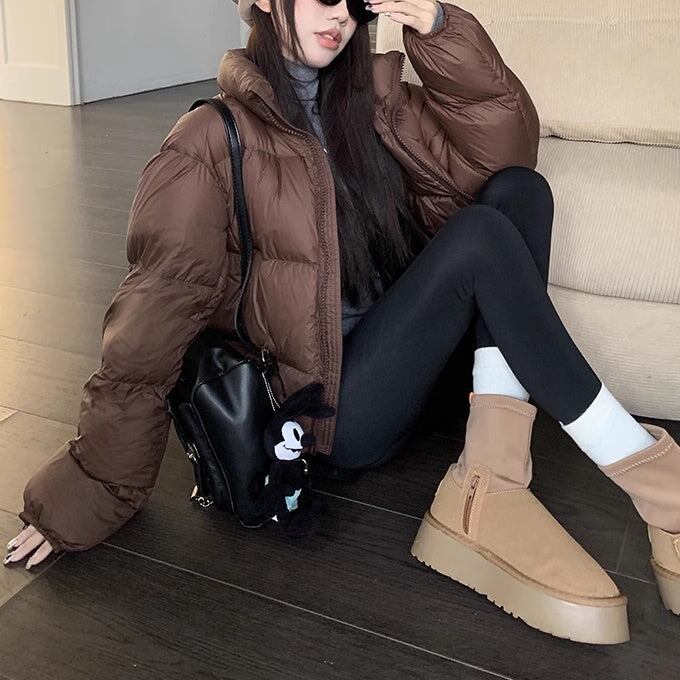 中綿アウター レディース 韓国 ファッション ダウンジャケット 無地 黒茶 ジップジャケット ショート丈 ボリューム