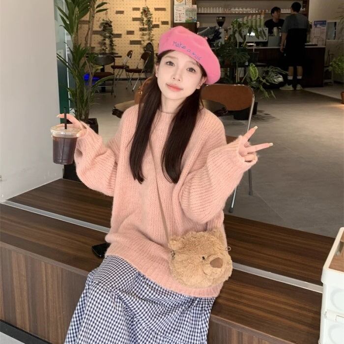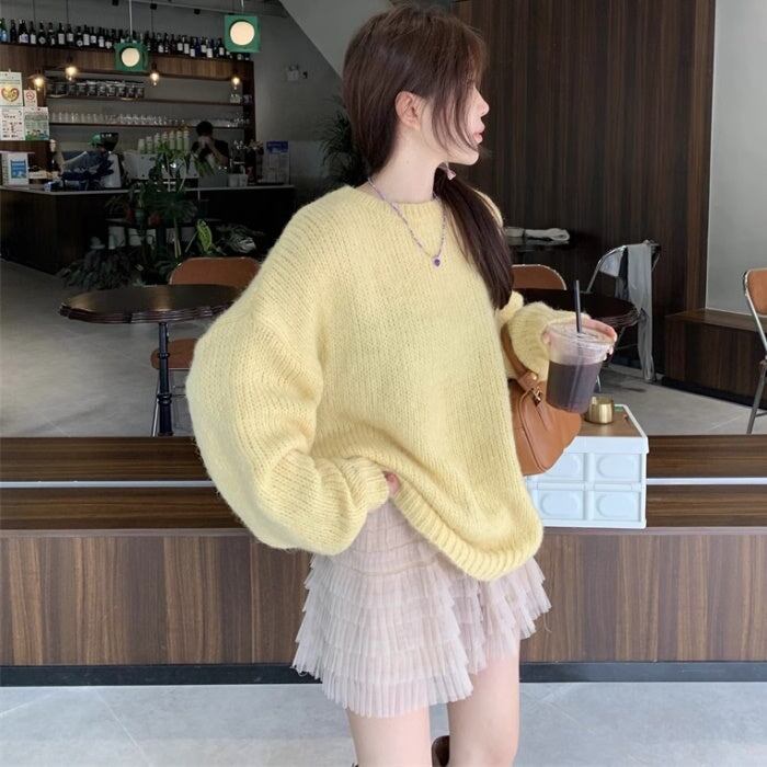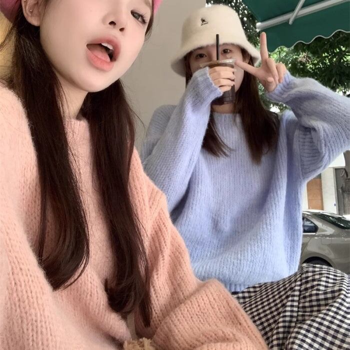 ニット レディース 韓国 ファッション パステルカラー カラフル ゆったりニット シンプル 無地 かわいい 春色 ニュアンスカラ