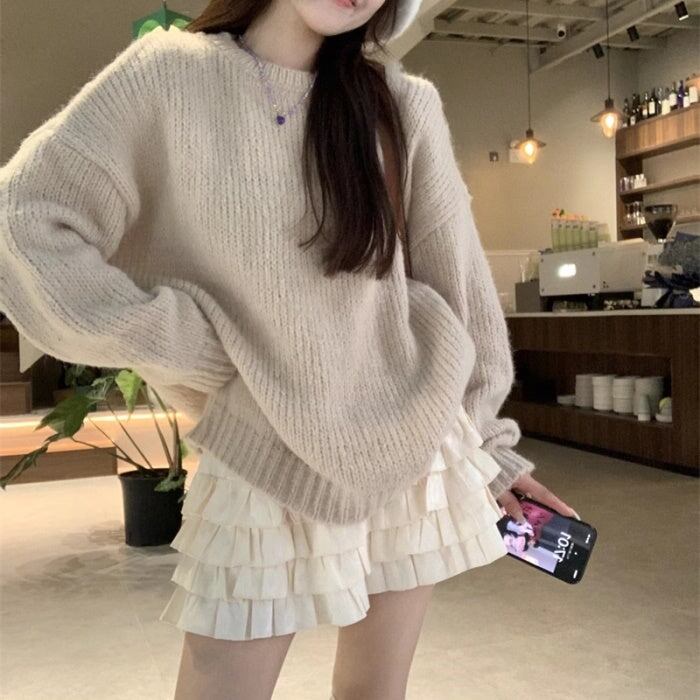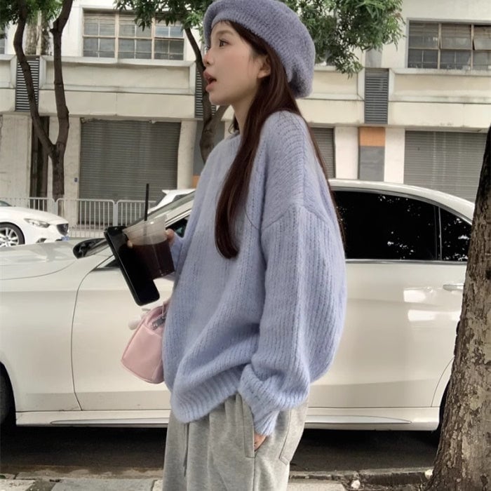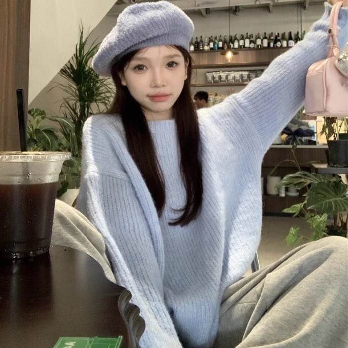 ゆったり ニット レディース 韓国 ファッション オーバーサイズ ニット シンプル 無地 かわいい ニュアンスカラー
